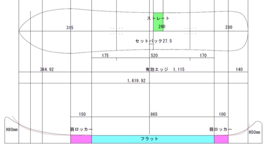 沈まないそして突き刺さらないノーズ。自由自在のトーションによるイージーなテールコントロール。板自体のフレックスは柔らかめだが、跳ね返りは強くハリがある。